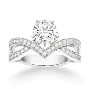 This fabulous bridal set for her features a round diamond enveloped in swirls of additional round diamonds at the center of the engagement ring. More round diamonds edge the 10K white gold band of the engagement ring and the matching wedding band. The bridal set has a total diamond weight of 3/4 carat.