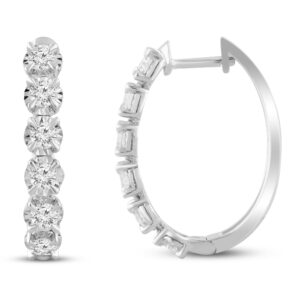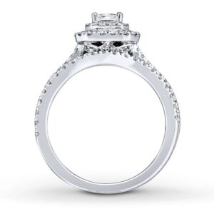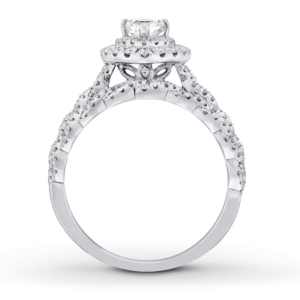 Boasting an impressive 2 carats in total diamond weight, this eye-catching diamond engagement ring is fahsioned in 10K white gold and features stunning round diamonds forming its pear-shaped center. Additional round diamonds halo the center and beam down the band with baguette diamonds in between.
